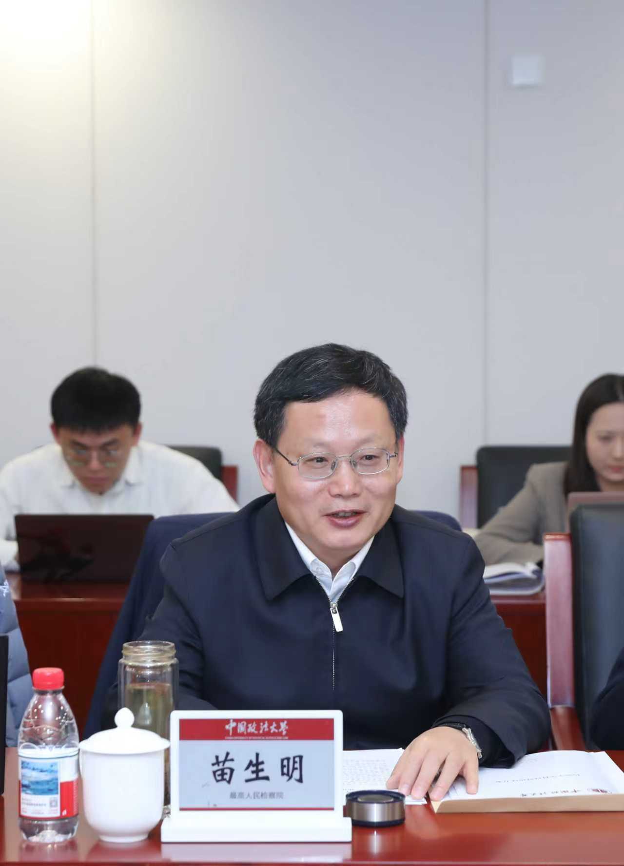 为深入贯彻落实党的二十届四中全会精神,一体推进检察学学科体系、学术体系、话语体系建设,11月3日,中国政法大学自主设置检察学二级学科专家论证会在海淀校区召开。最高人民检察院党组成员、副检察长苗生明,我校校长马怀德出席论证会,论证会由副校长刘艳红主持。论证会前,我校党委书记姜泽廷会见了苗生明一行。